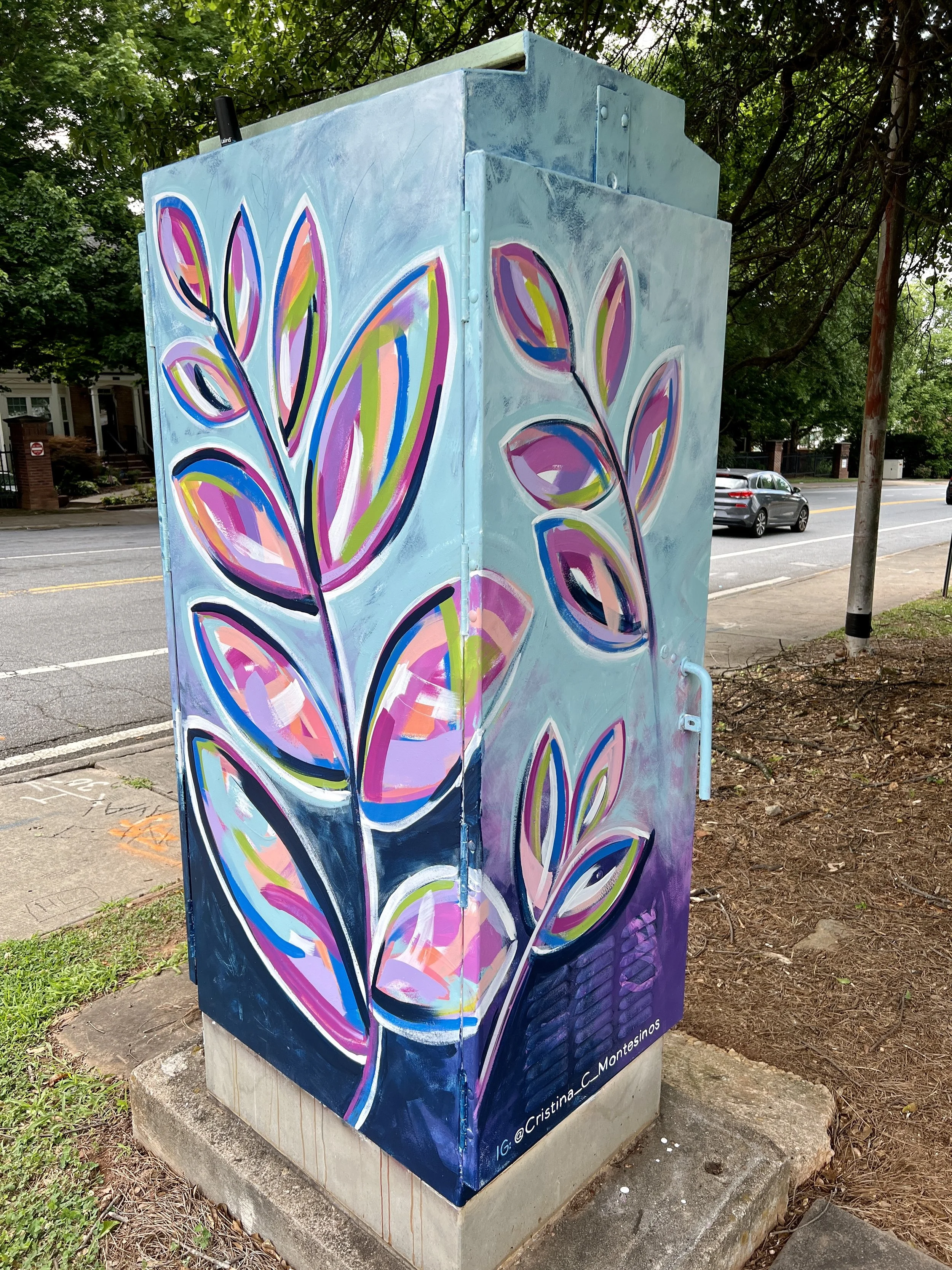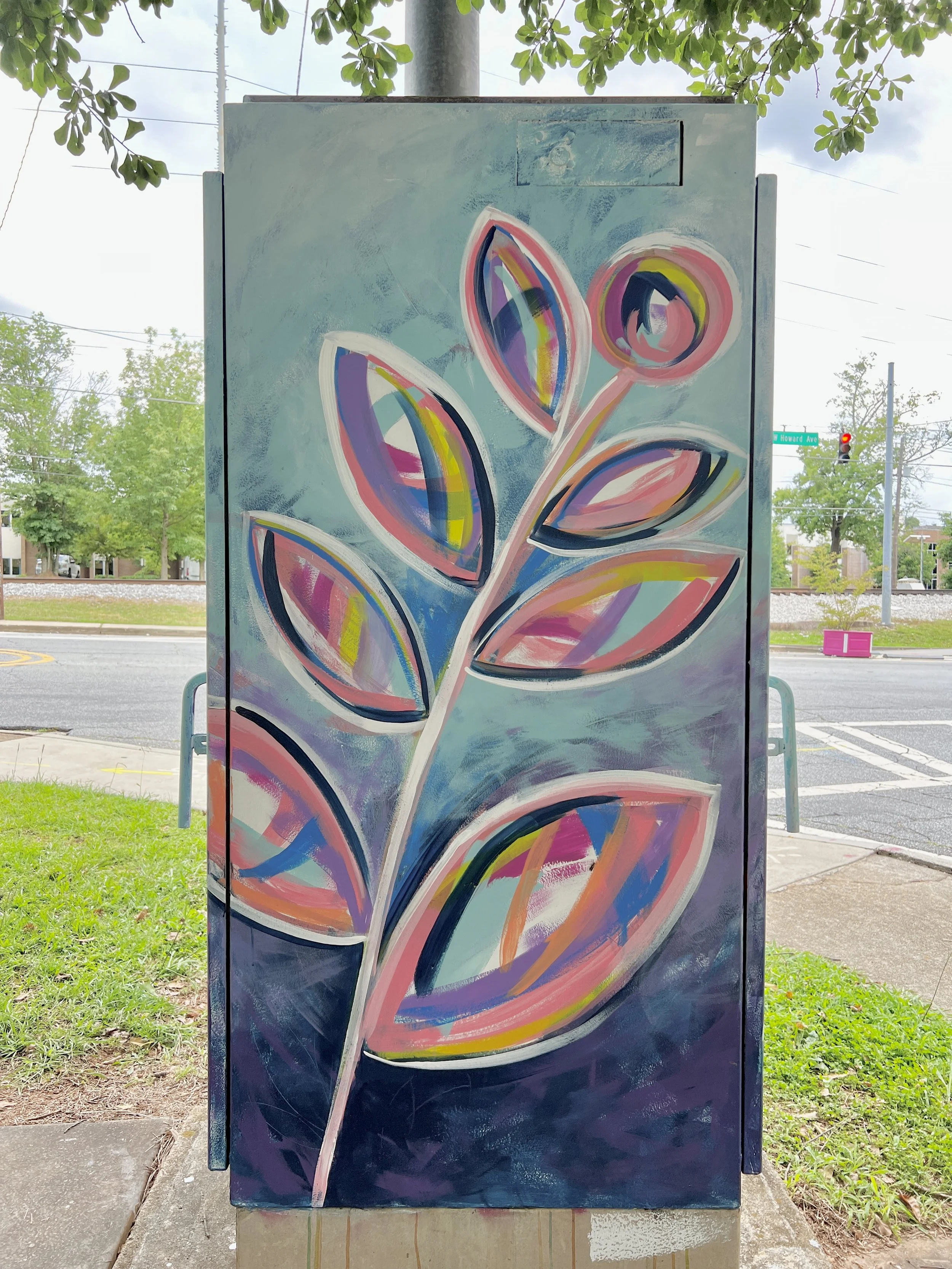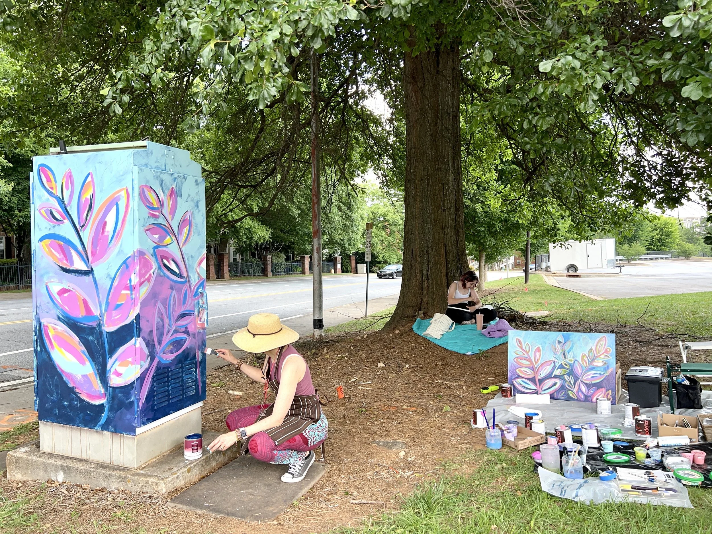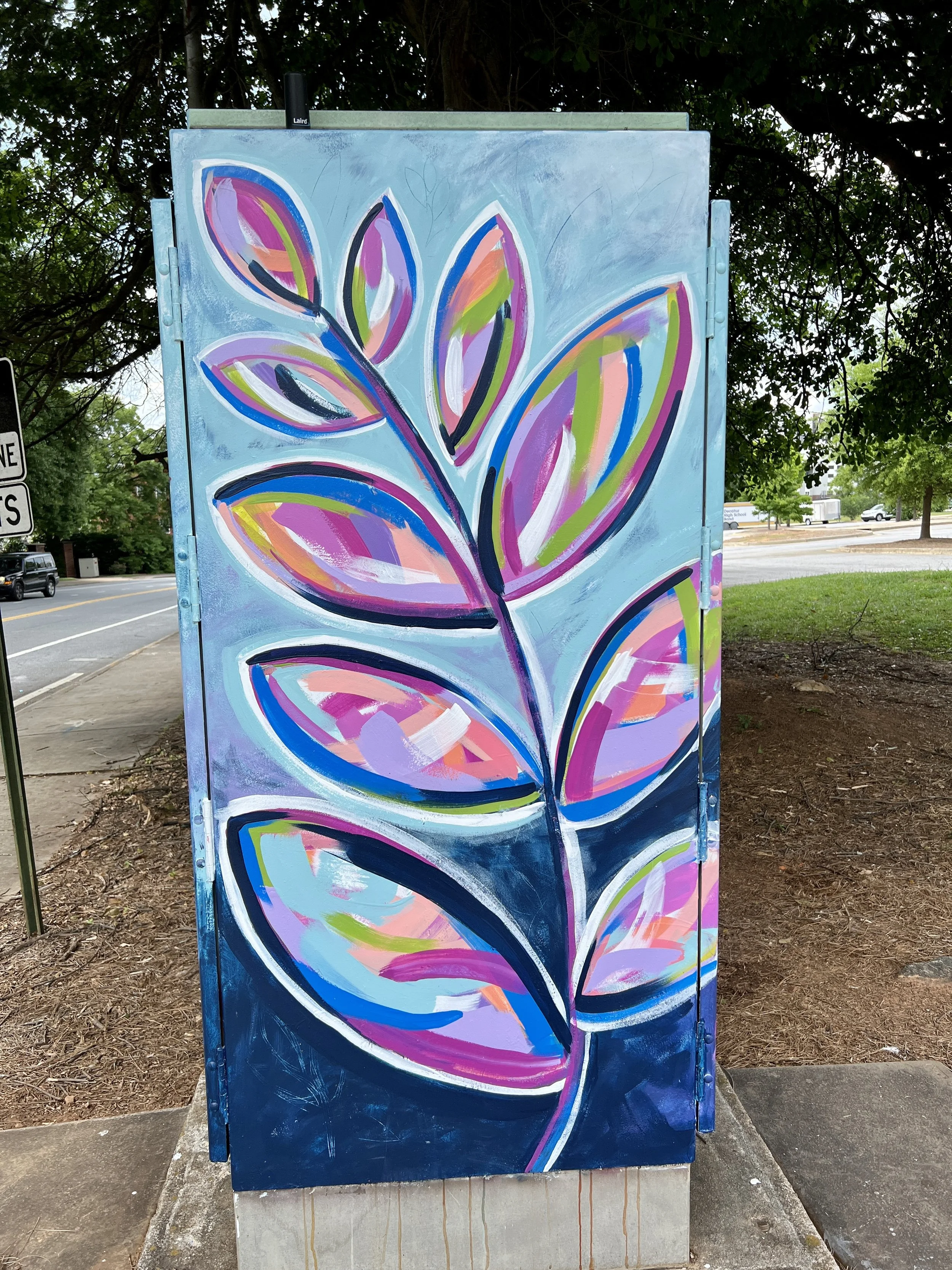 I was so excited when I was accepted into the Decatur Box Project sponsored by the Decatur Arts Alliance. I love a new challenge, and this was one. I was one of 33 artists accepted into the program, so I got to paint a large traffic box! Never having painted an outdoor piece before, I was surprised at how much I loved everything about it!