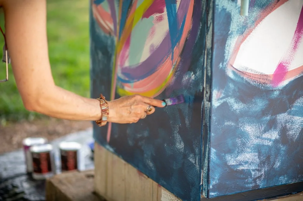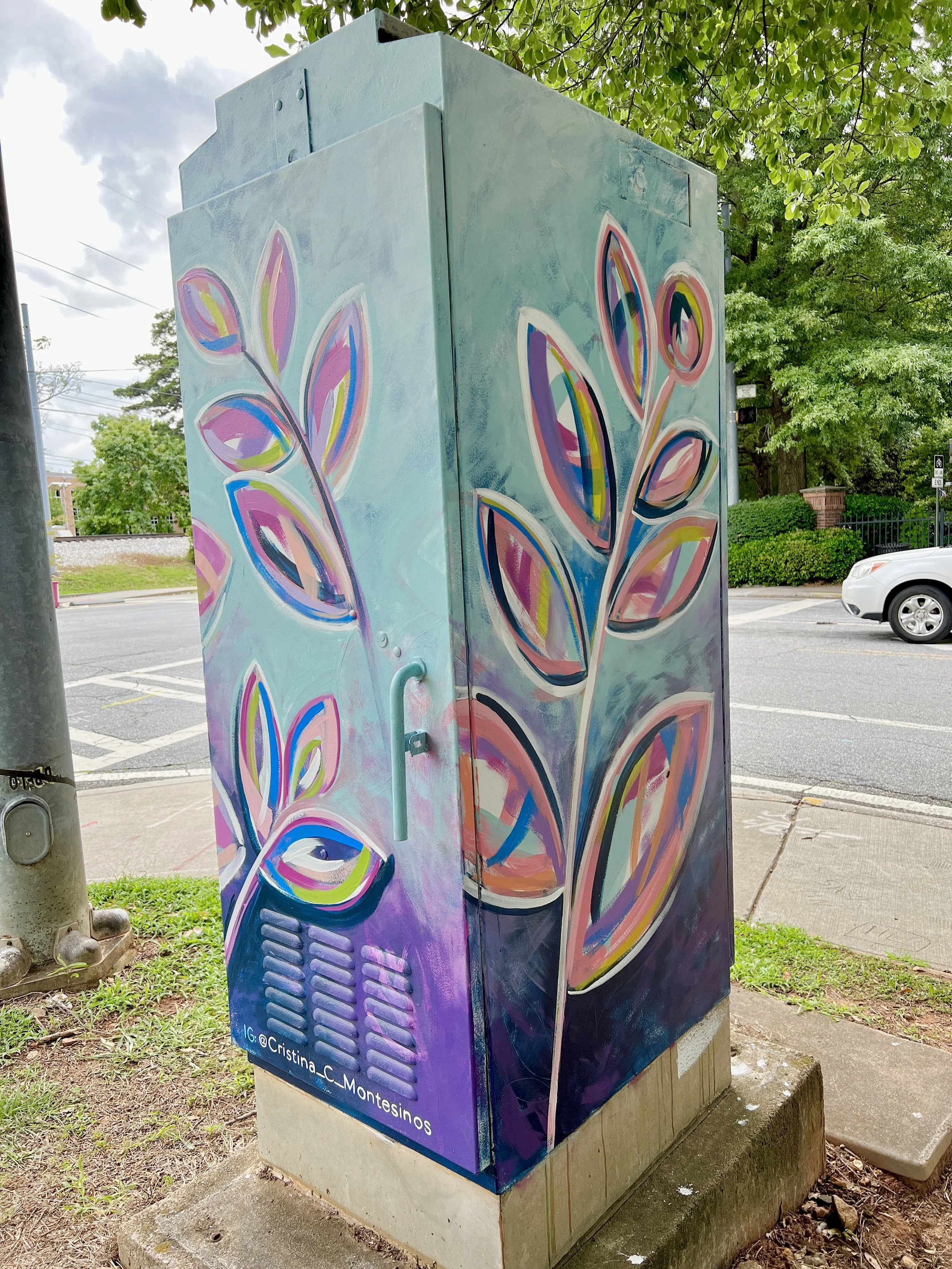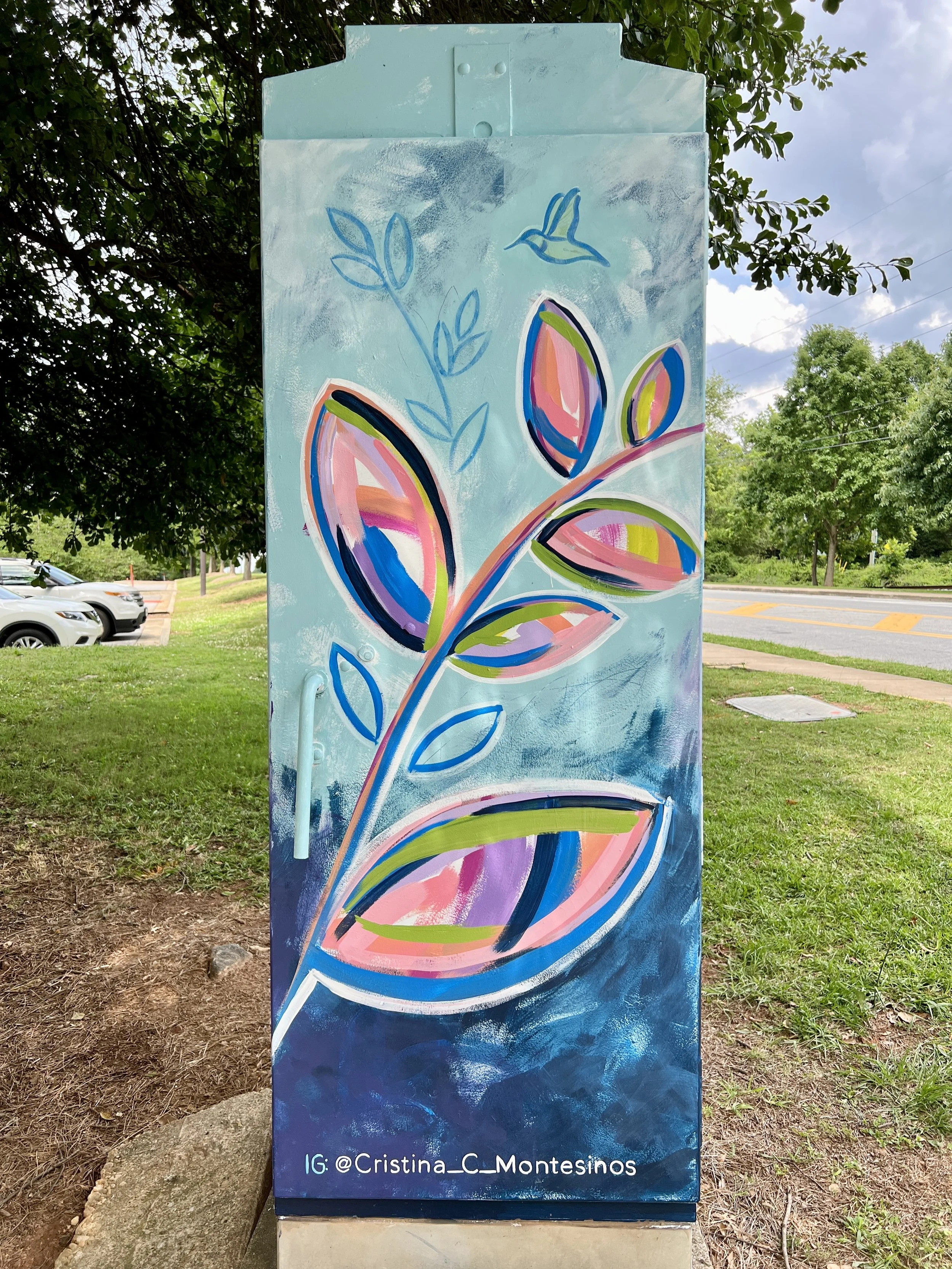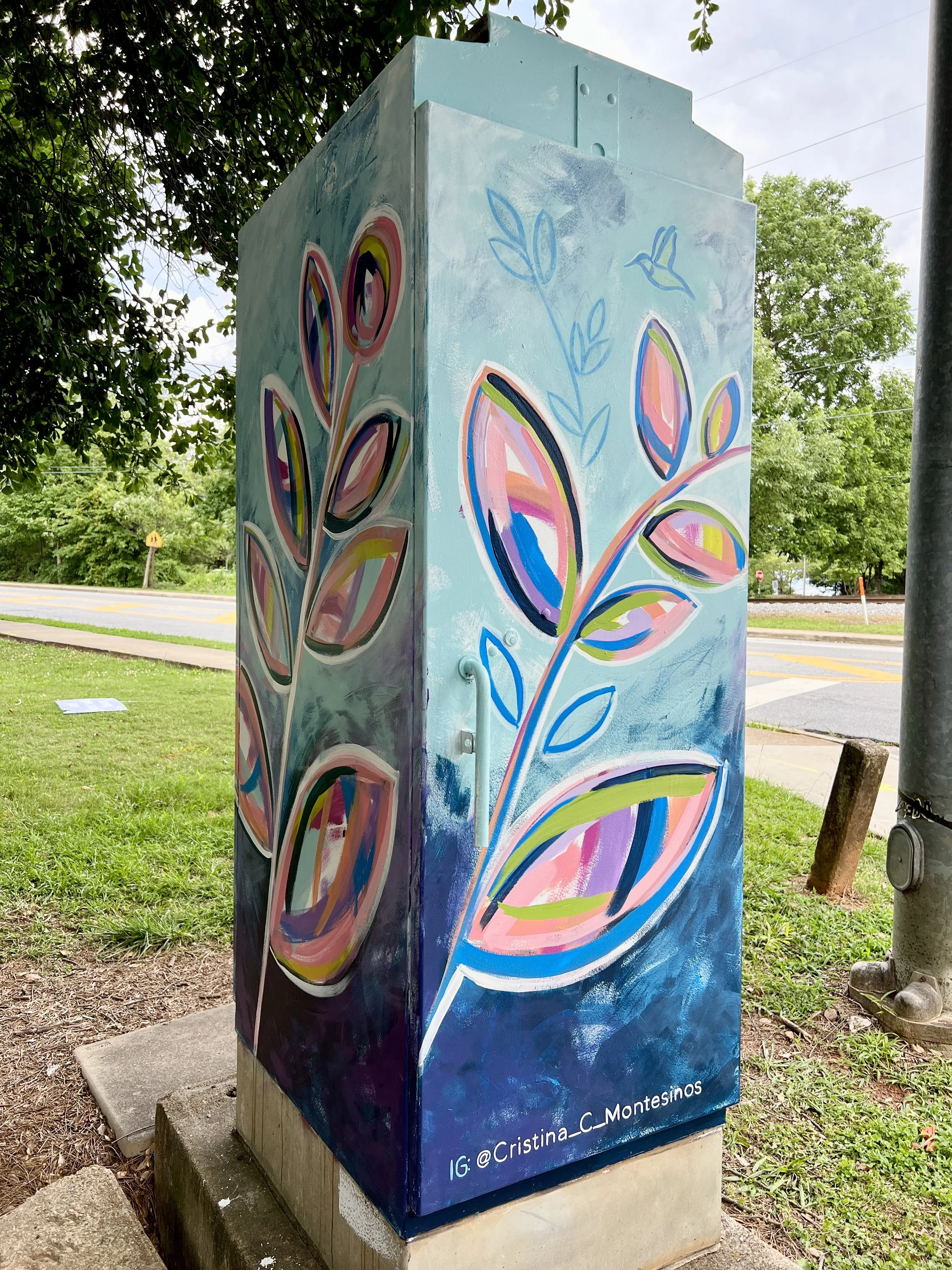 I was so excited when I was accepted into the Decatur Box Project sponsored by the Decatur Arts Alliance. I love a new challenge, and this was one. I was one of 33 artists accepted into the program, so I got to paint a large traffic box! Never having painted an outdoor piece before, I was surprised at how much I loved everything about it!