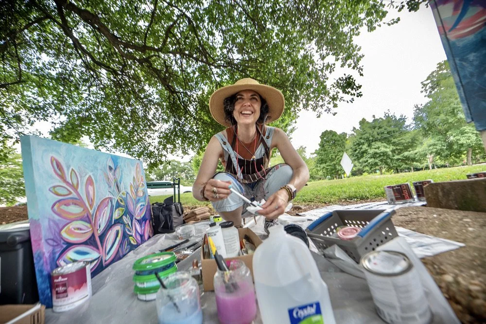 And the best interaction was one with a man of very small means who stopped to chat briefly as I was working. He gave me the biggest smile and told me how much he loved the work. 💕 He also asked, with much concern, whether I had enough cold water. (It was a HOT day.) He was ready to share some of his stash that he must have just bought. What a kind, beautiful soul! He had such a kind, gentle energy.